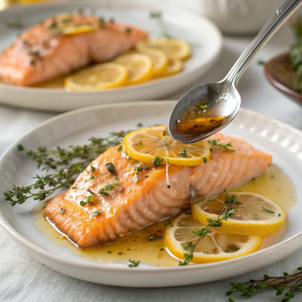 Transfer the salmon to plates, spooning extra glaze on top. Garnish with lemon slices, thyme sprigs, or a sprinkle of orange zest for color.