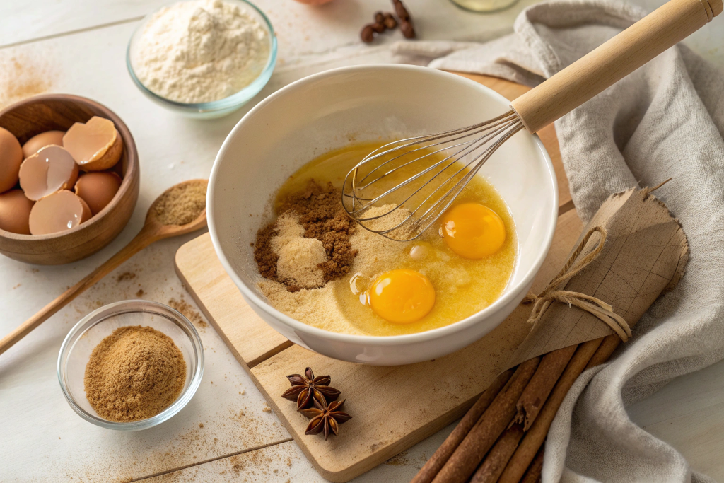 In a large bowl, whisk melted butter, brown sugar, and white sugar until smooth. Add the vanilla extract, egg, and extra yolk. Mix until creamy and well combined.