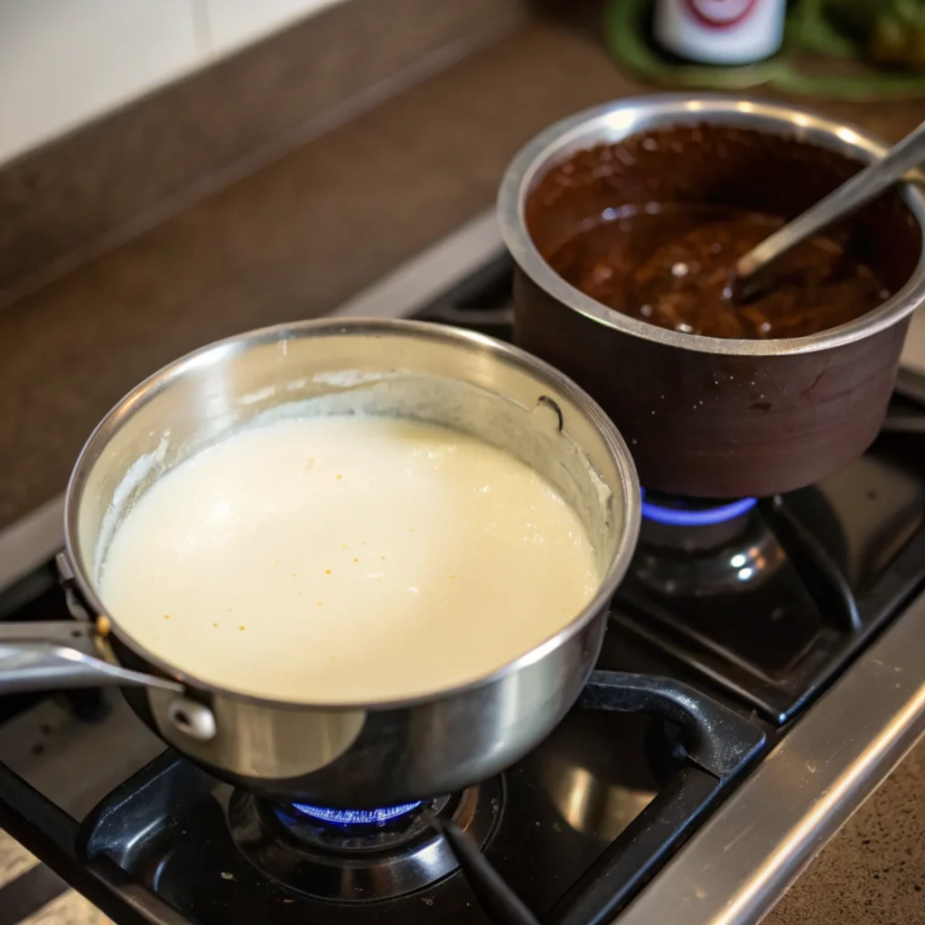 Add the heavy cream to a small saucepan and warm it over medium heat until it begins to steam and bubble slightly around the edges. Avoid boiling it—gentle heat is perfect for melting dark chocolate without affecting its flavor.