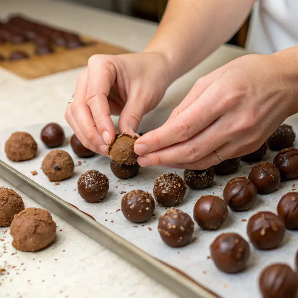 Place the coated truffles on a parchment-lined tray and refrigerate for another 20–30 minutes to help them set.