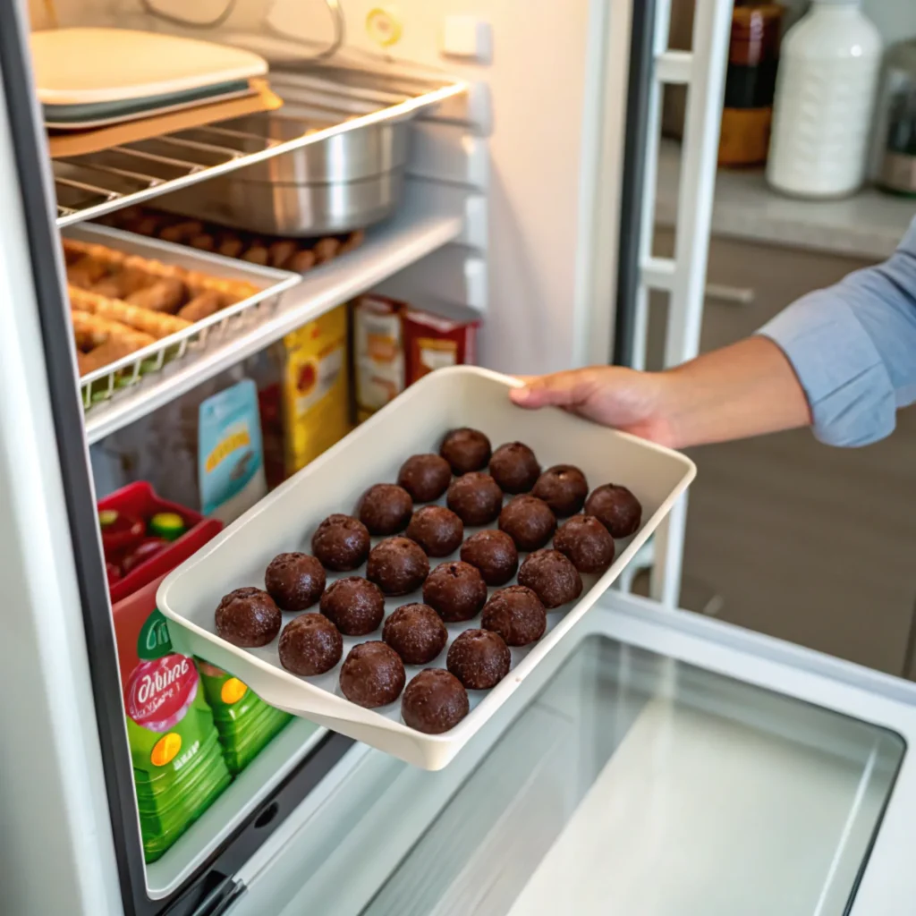 Return the tray to the refrigerator for 20–30 minutes to allow the truffles to firm up completely before serving.