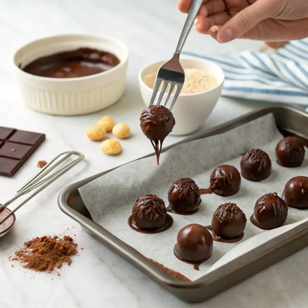 Refrigerate the truffles for 30 minutes. This helps them stay firm when dipped.