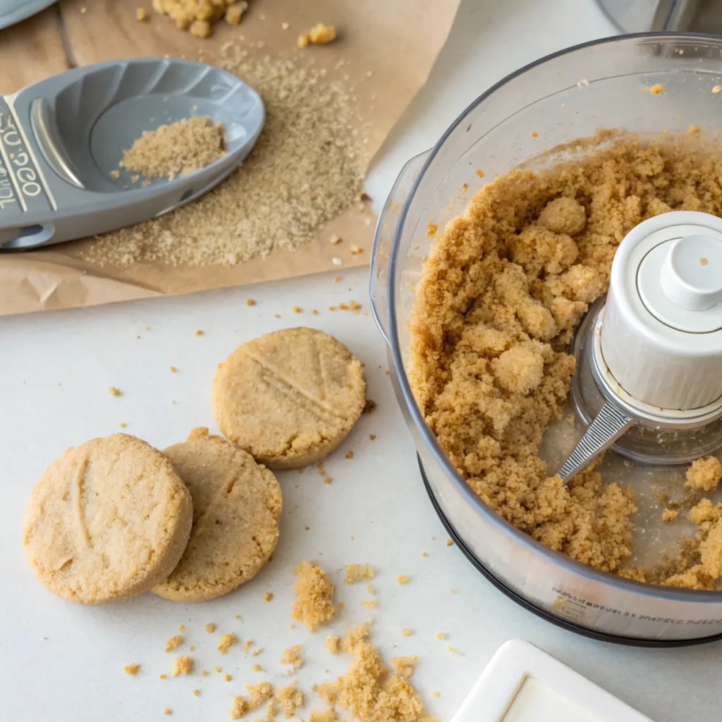 Place the sugar cookies in a food processor and pulse until finely crushed. You want the texture to resemble coarse sand—no big chunks. If you don’t have a food processor, place the cookies in a zip-top bag and crush them with a rolling pin.