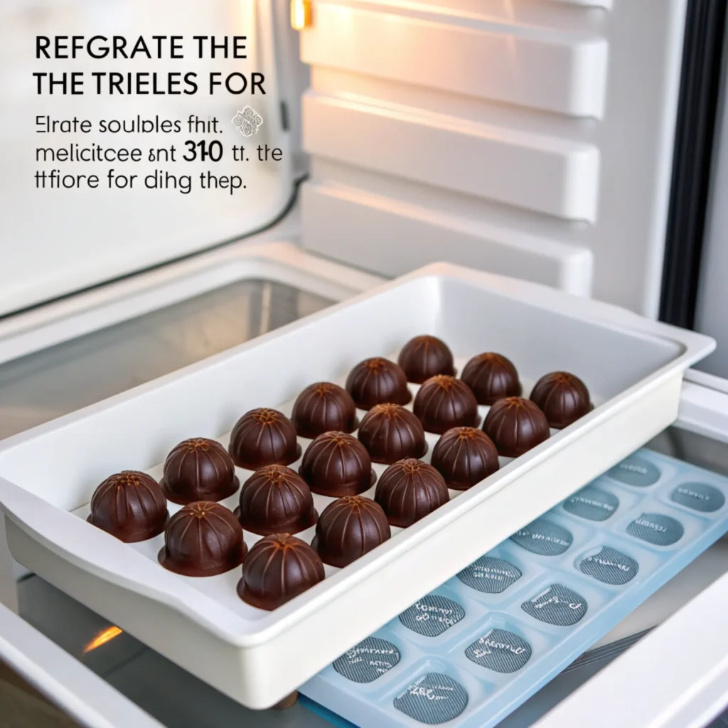 Refrigerate the truffles for 10–15 minutes to allow the chocolate coating to fully set.